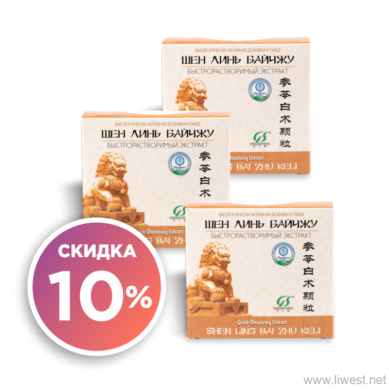 С 24 февраля по 5 марта при покупке трёх упаковок экстракта «Шен Линь Байчжу» — скидка 10 %!