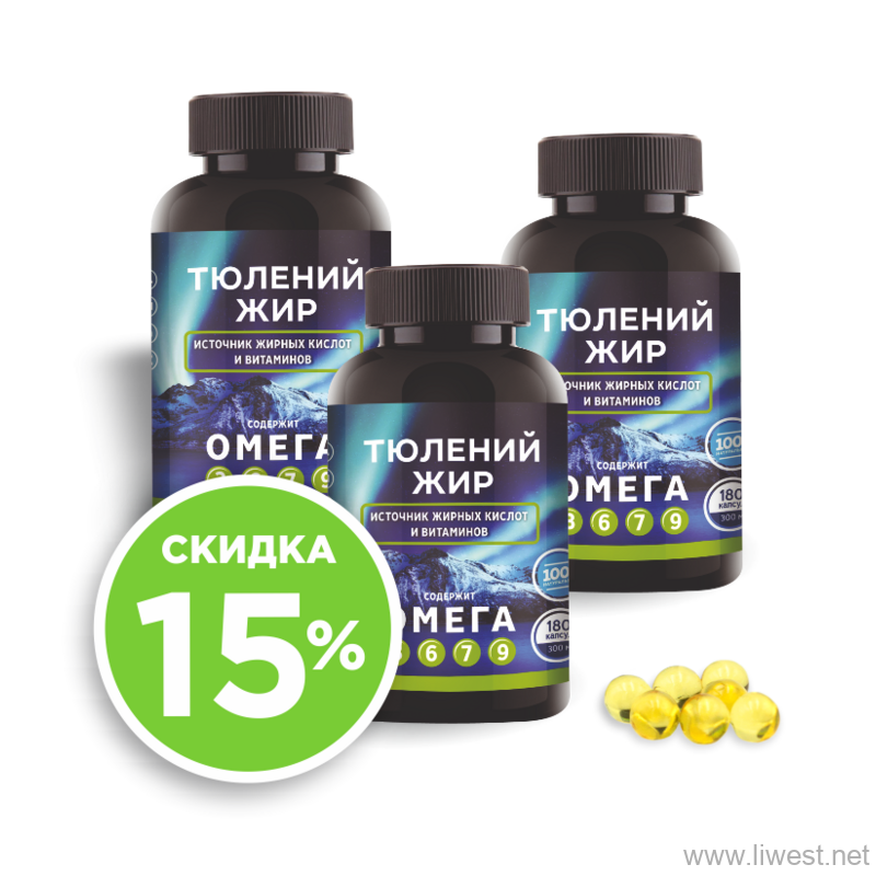 С 24 февраля по 5 марта при покупке трёх упаковок капсул «Тюлений жир» — скидка 15 %!