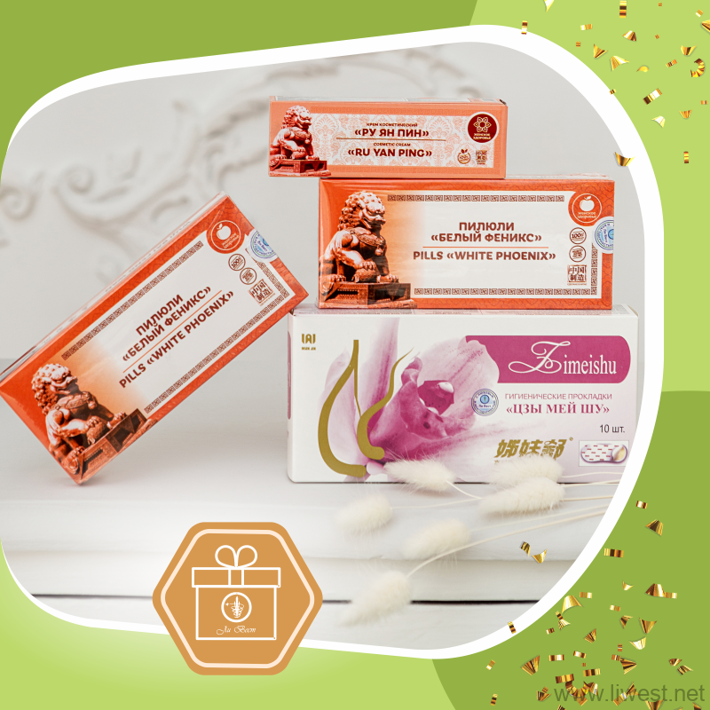 С 1 по 15 марта 2026 года при покупке двух упаковок пилюль «Белый феникс», прокладок «Цзы Мэй Шу» — в подарок крем «Ру Ян Пин»!
